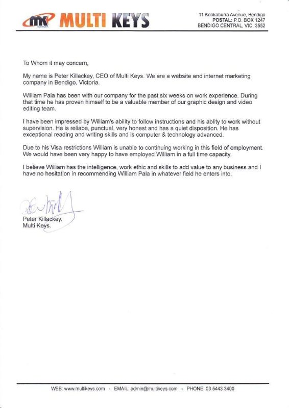 La MultiKeys Bendigo è una piccola azienda specializzata nella gestione di spazi Web e nella creazione di Siti Web. Mi occupavo principalmente della creazione di prodotti multimediali finalizzati alla promozione online di vari clienti, intanto tra un video e un altro imparavo un po di HTML/CSS. Scarica le referenze